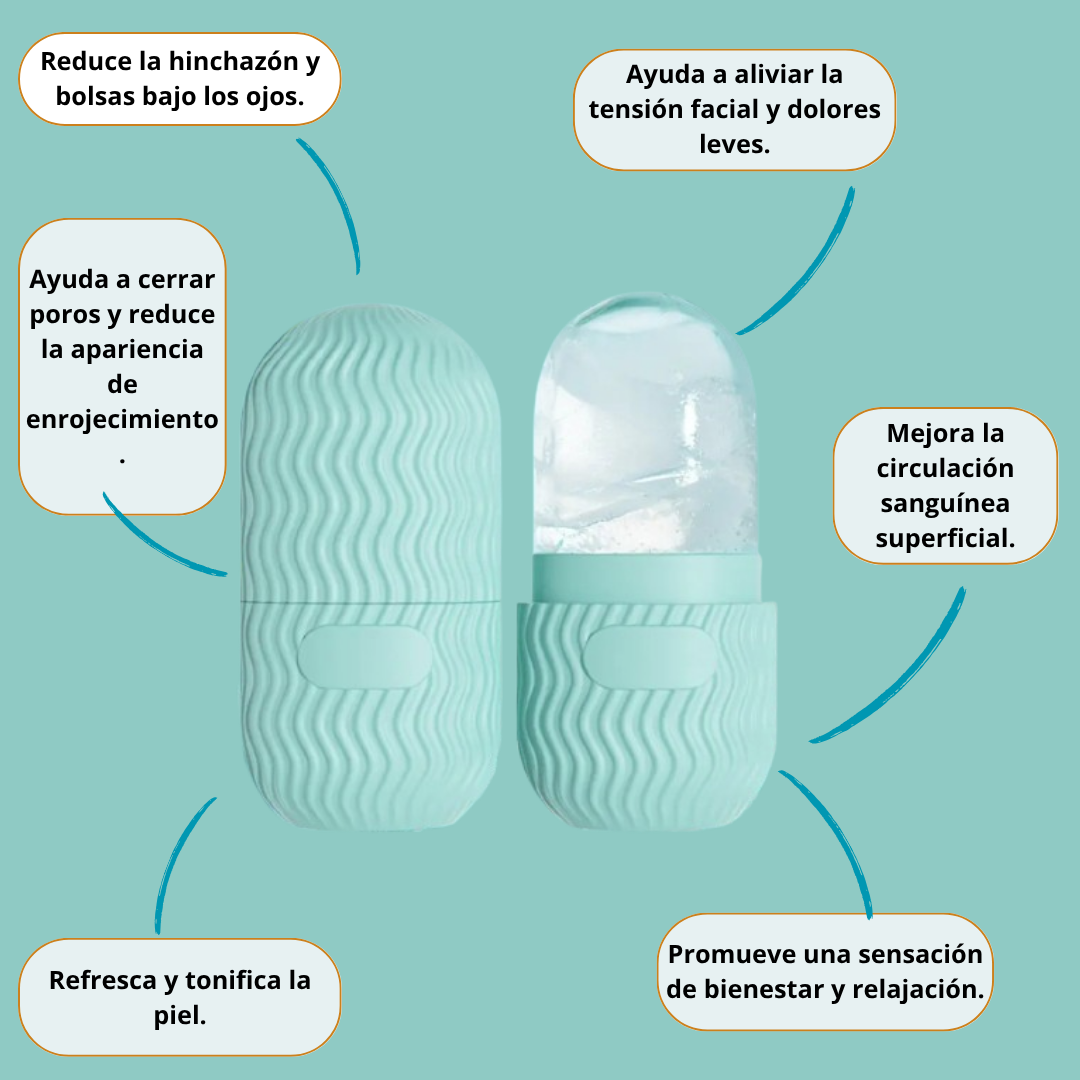 Es una herramienta reutilizable diseñada para aplicar hielo en el rostro de forma fácil y cómoda. Ayuda a tonificar la piel, reducir la inflamación, cerrar poros y revitalizar el rostro.